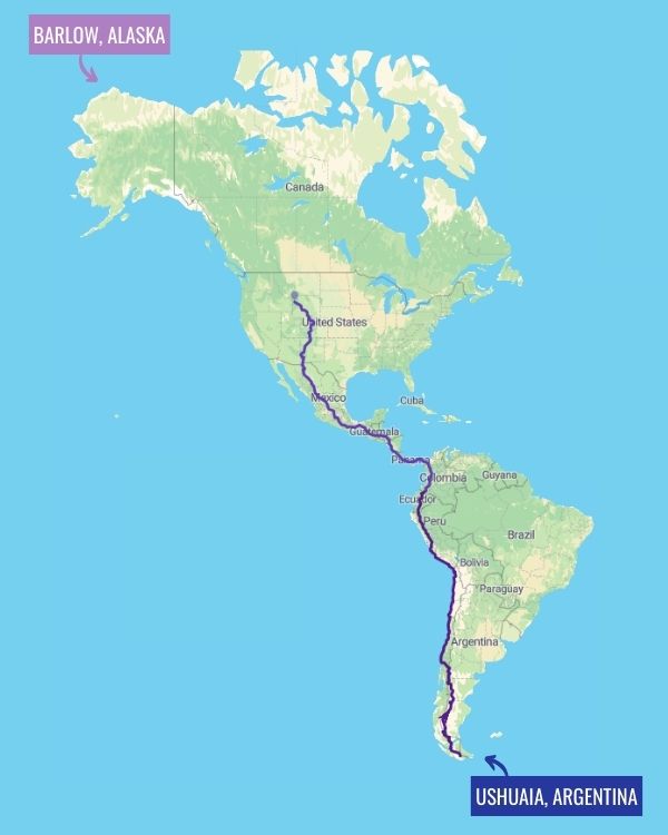 From Ushuaia, Argentina, to Utqiaġvik, Alaska. Even though I mapped out the trail way back when… I’ve never stuck to it.